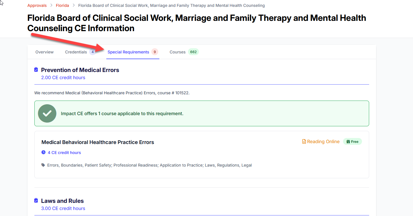 Which courses will meet my special state requirements (e.g., ethics, domestic abuse, etc.)?