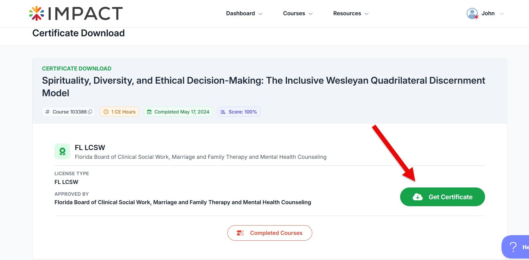 From the Completed Course tab, you will see an option next to your completed course to View Certificate.