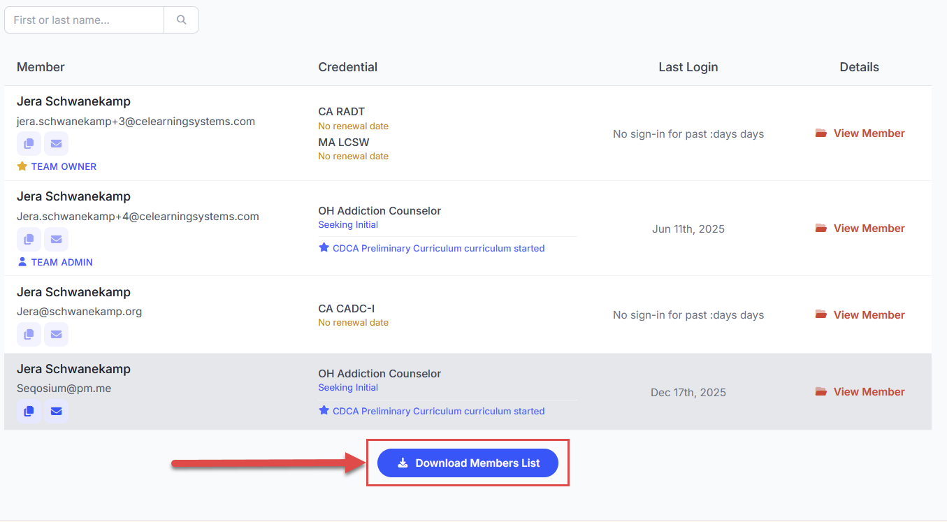 Downloading a list of your Team Members