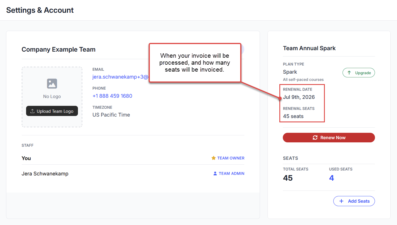 All seats in your team are billed on at the same time each year: