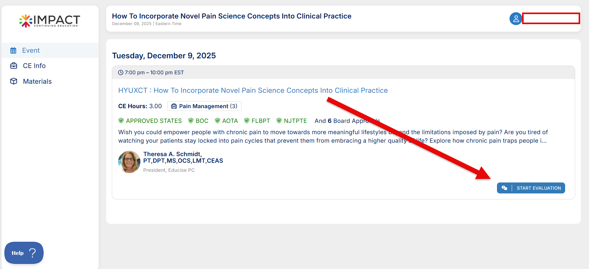 On the next screen, you'll find the blue Start Evaluation button on the right.